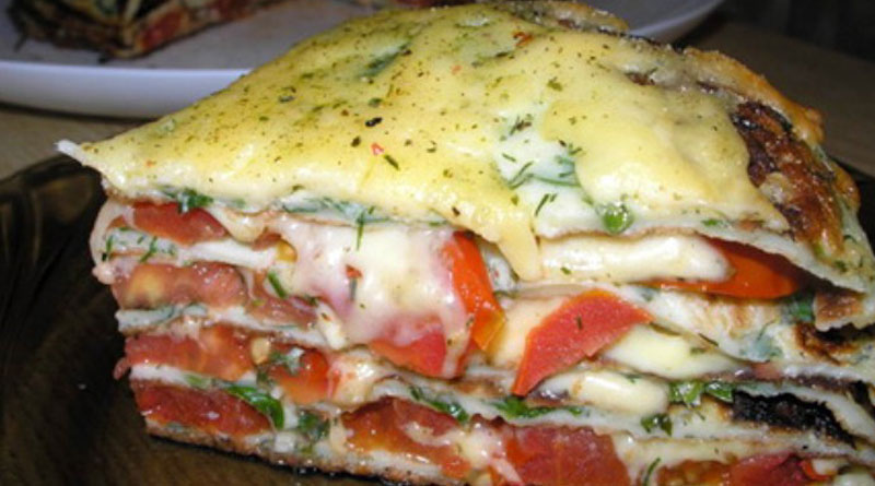 Когда накрываем пирог верхним, последним блином, посыпаем его только сыром.