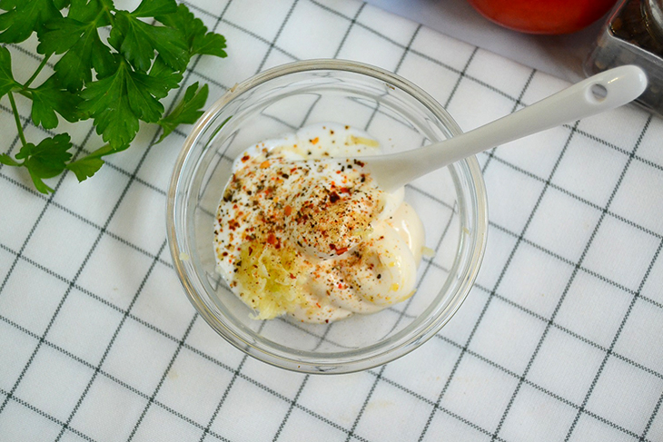 Если хотите снизить калорийность соуса, то можно часть майонеза заменить на ложку нежирной сметаны или натурального йогурта.
