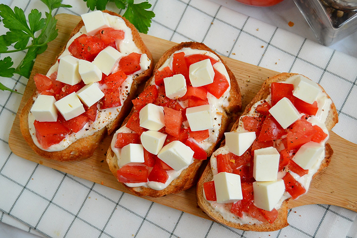 Брускетта с сыром фета и помидорами — ароматная и аппетитная