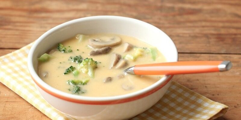 Супчик с шампиньонами и брокколи получается восхитительно вкусным. Особенный шарм и сливочный вкус ему добавляет плавленный сыр. Суп не оставляет тяжести