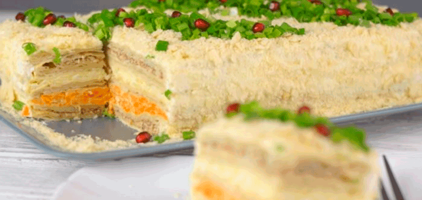 Закусочный торт «Наполеон» пользуется огромным успехом. Он всегда уходит со стола первым. Получается очень вкусным, сытным и в меру влажным: каждый кусочек тает во рту.