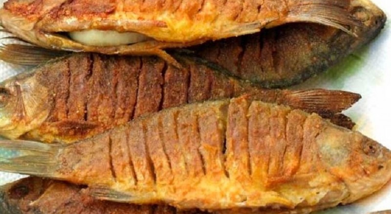 Очень интересный вариант постного блюда для тех дней, когда можно есть рыбу. Караси, приготовленные по этому рецепту, фаршируются репчатым луком. При таком способе обжаривания карасики получаются очень нежные, ароматные. А специи придают рыбке фантастическую пикантность.