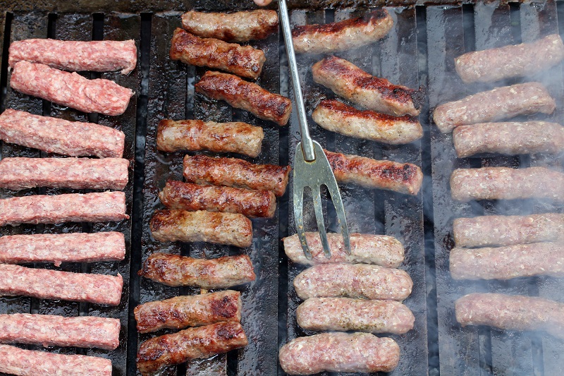 Dumplings (cevapcici) on the barbecue, like nice food background.