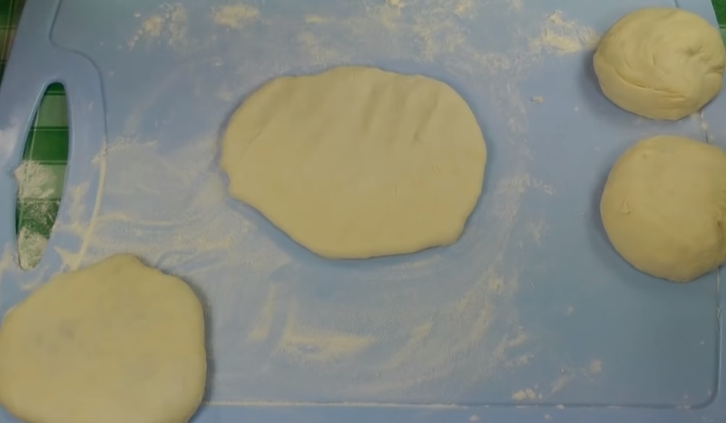 - Выложи тесто на стол, раздели на части. Из каждого кусочка теста сформируй шарики, которые слегка раскатай скалкой.