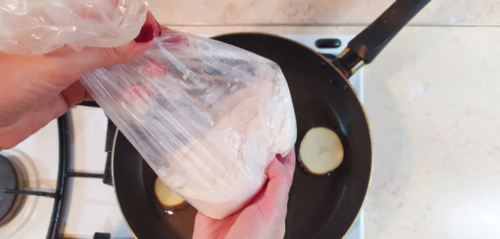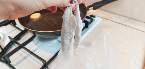 Сложите в пакет рыбу и встряхните. Этот способ избавляет кухню от грязи.
