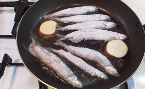 Положить в сковородку 2-3 картофельных кружка и жарить рыбу вместе с ней. Картофель устранит рыбный запах.