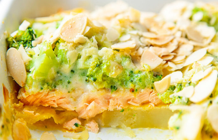 Вкуснейшая запеканка с лососем, картофелем и брокколи