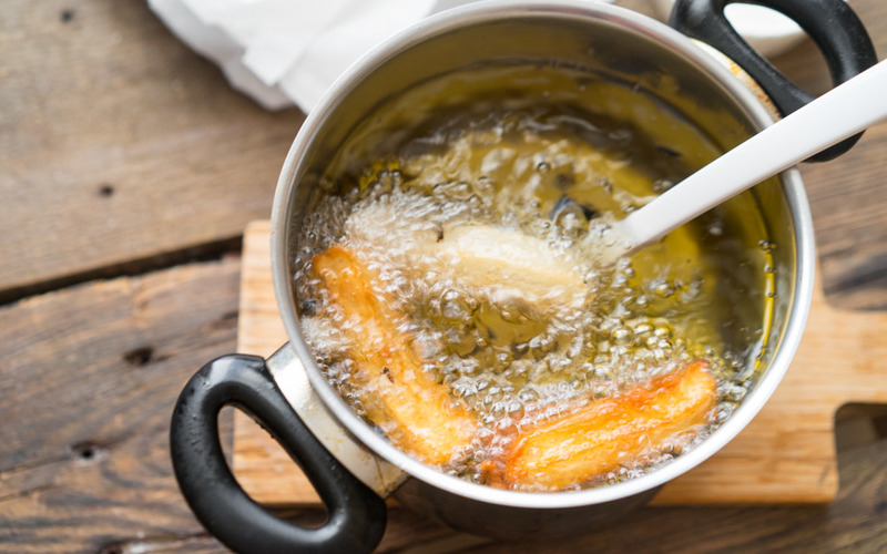 5. Берем глубокую сковороду и разогреваем в ней подсолнечное масло.